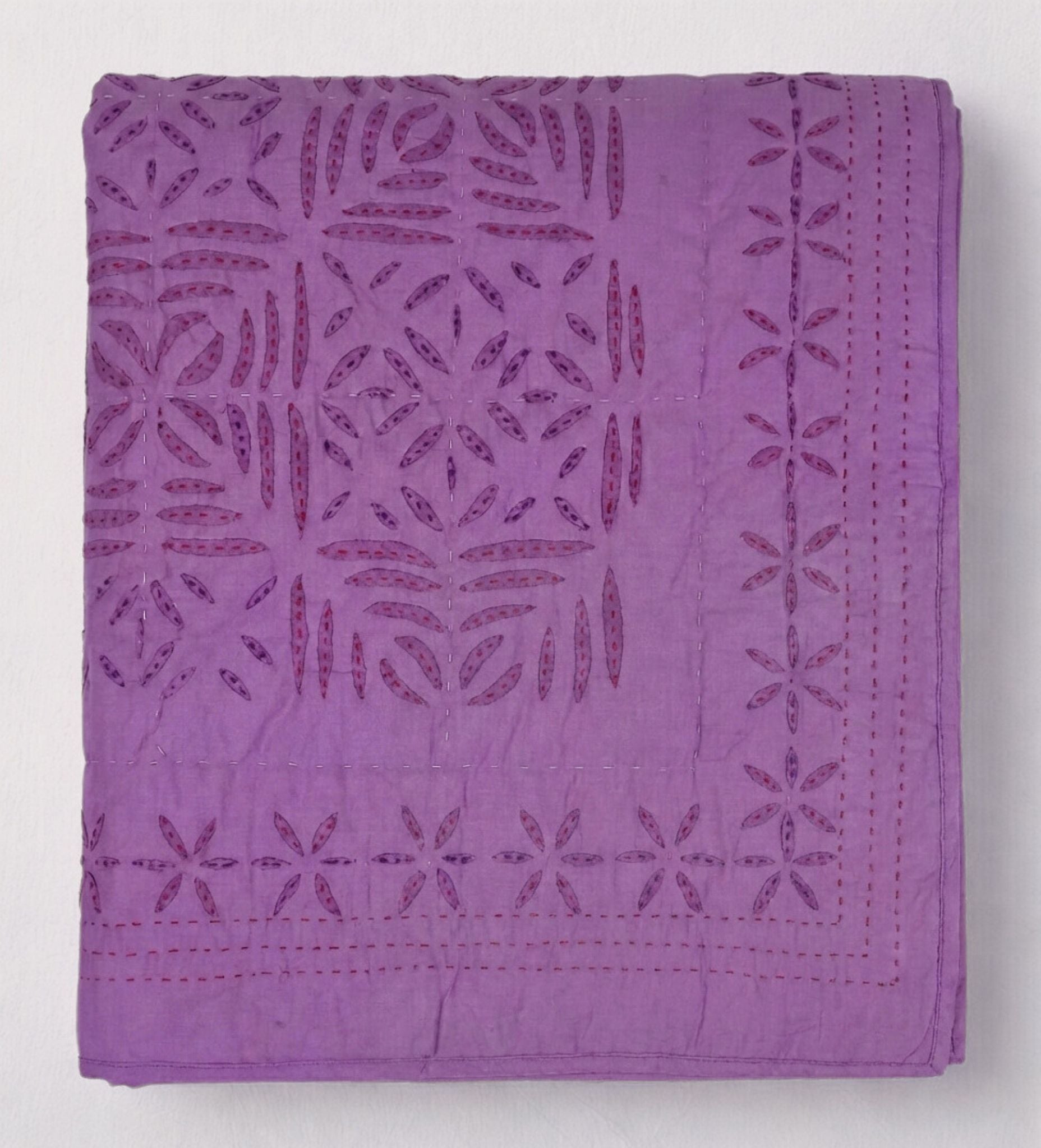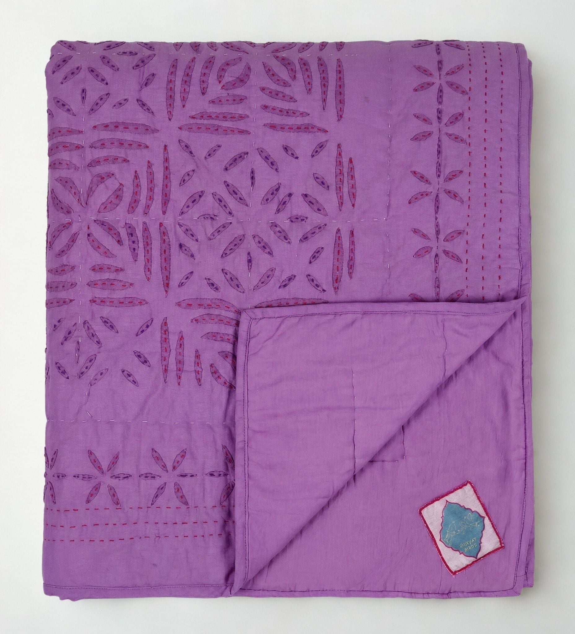 Die Kutch Amethyst Decke von Bombay Birds, ein handgefertigtes Meisterstück, verwandelt dein Zuhause in eine Oase der Farben und ist ein lebendiger Ausdruck der einzigartigen Kutch Handstickerei und des Patchworks. Ihre strahlende Farbgebung und das kunstvolle Patchwork machen jede Decke zu einem fröhlichen Unikat, das den Raum mit Wärme und Charakter erfüllt. Das intensive Lila der Decke verleiht jedem Raum eine besondere Aura.