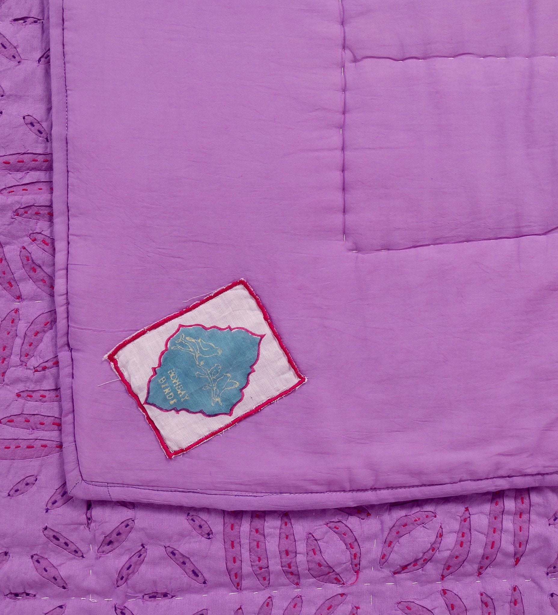Dieser Decke ist ein lebendiges Zeugnis der geschickten Hände erfahrener Kunsthandwerkerinnen und der präzisen Handarbeit, die das reiche kulturelle Erbe und die Tradition indischer Handwerkskunst Gujarats am Leben erhalten. Gefüllt mit 100% Baumwolle, spendet die Decke dank ihrer atmungsaktiven Eigenschaften das ganze Jahr über angenehmen Komfort ideal als zusätzliche Schicht im Winter oder für sich allein in wärmeren Monaten.