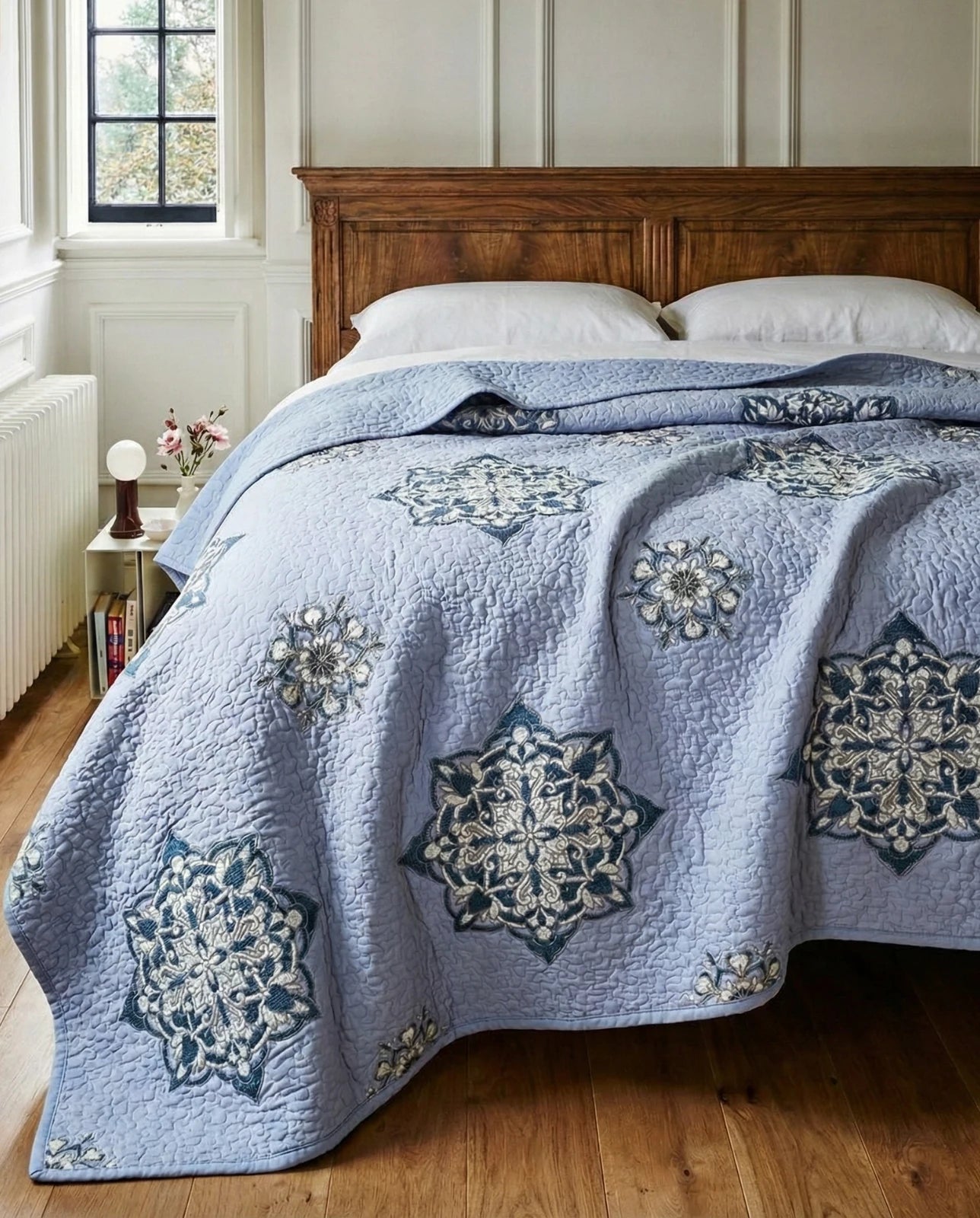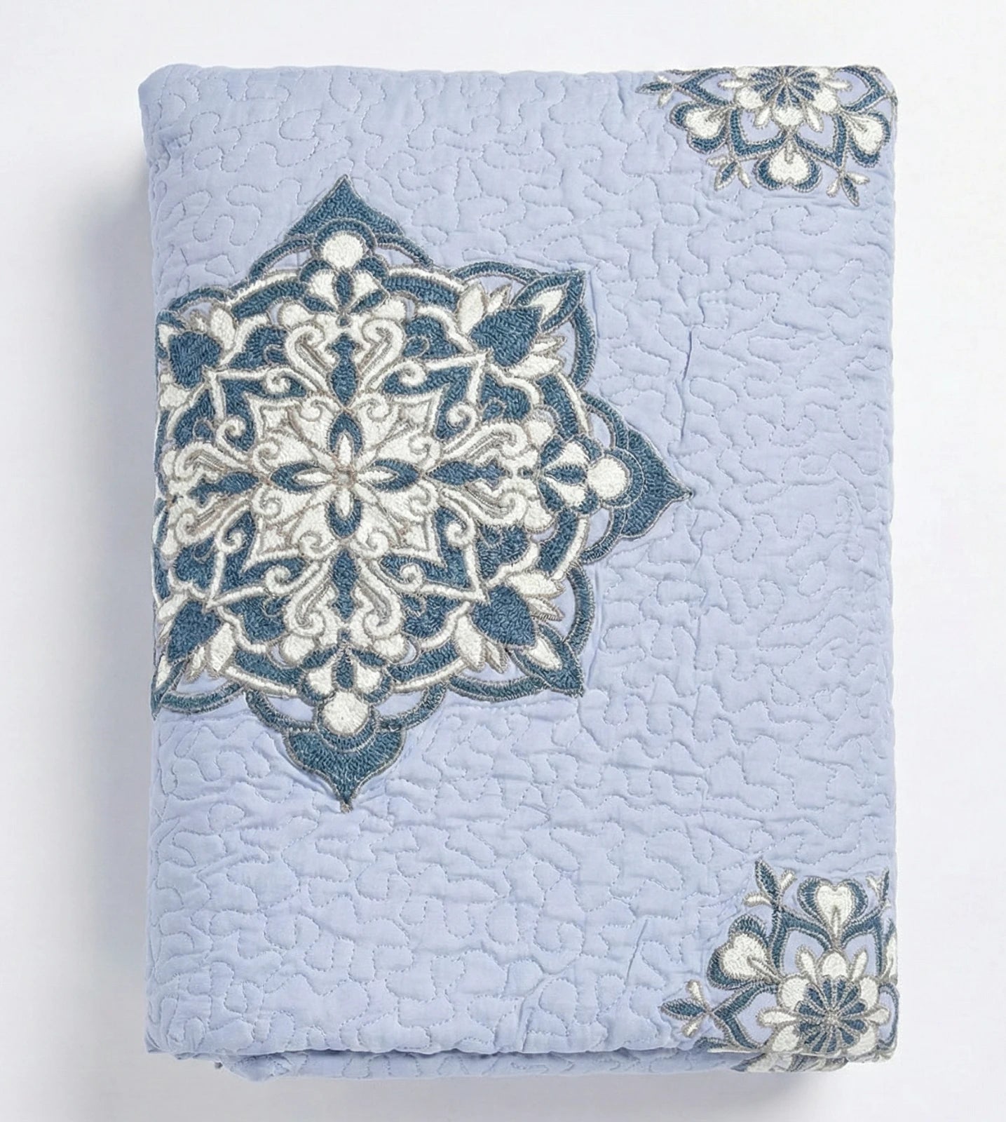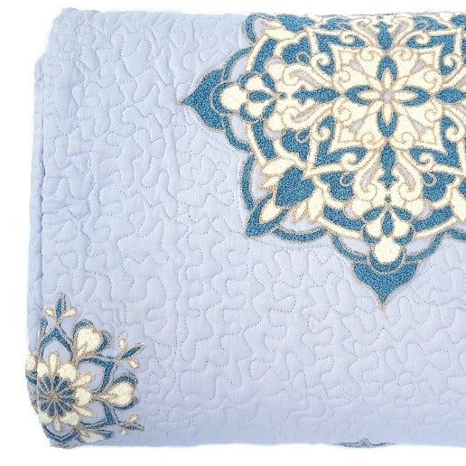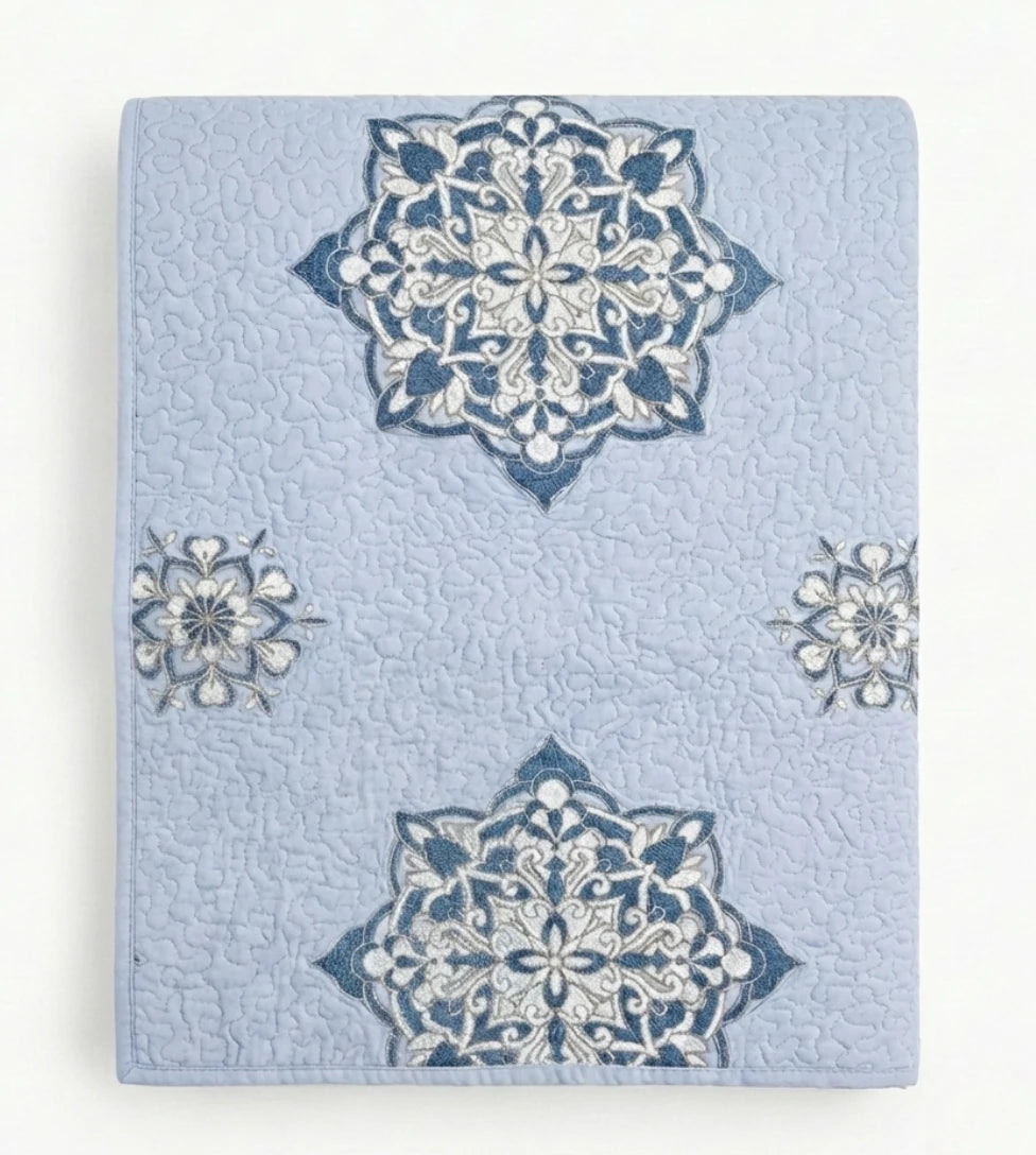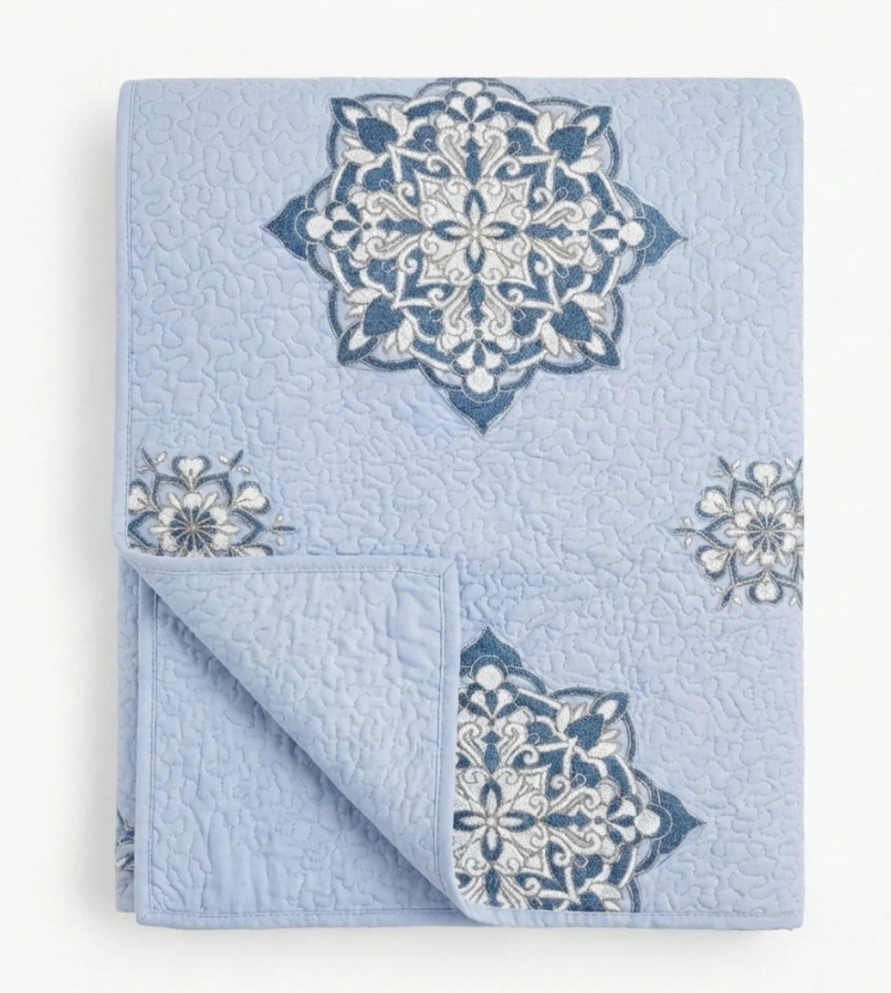 Die faszinierenden Lilatöne und die einzigartigen Suzani-Münzen, die diese Decke schmücken, erzählen eine Geschichte von kulturellem Erbe und detailverliebter Präzision. Die Decke ist mit 100% reiner Baumwolle gefüllt und spendet dank ihrer atmungsaktiven Eigenschaften das ganze Jahr über angenehmen Komfort.